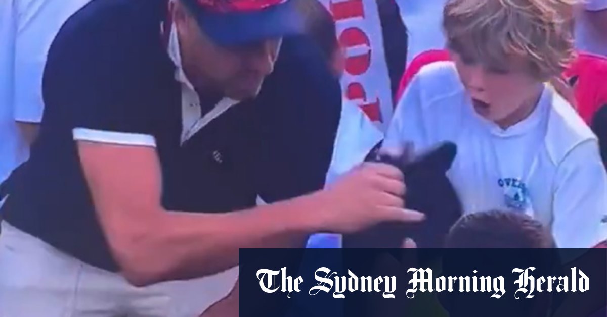 Un hombre está atrapado en un video arrebatando una gorra usada de un joven fanático en el US Open.