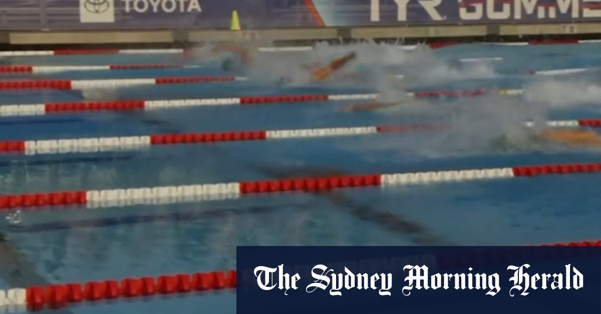 Jamie Jack de Australia, el hermano menor de Shayna, gana la final de estilo libre de 50 metros masculino en el Campeonato de Natación de Verano de EE. UU.