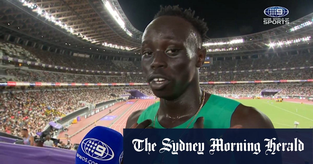 Australian Sprinter Gout gout habla con nueve inmediatamente después de su cuarto puesto en la semifinal de 200 metros.