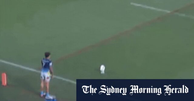 Un entrenador de los Panthers corre hacia el camino de Jayden Campbell mientras alinea una conversión. Credit: Fox Sports