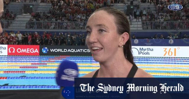 Lani Pallister habla con Cate Campbell después de ganar plata en el estilo libre de 800 m femeninos en el Campeonato Mundial de Natación 2025.