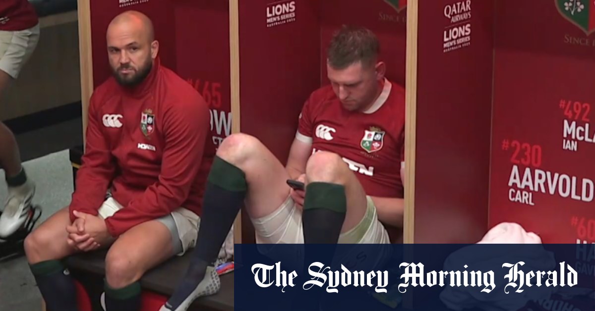 La estrella de los Leones, Finn Russell, juega con su teléfono durante un retraso en el rayo, mientras que los Wallabies parecen estar usando el tiempo más en serio.