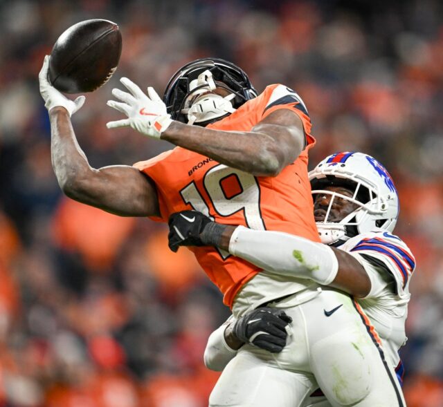 Eso puso a los Broncos arriba 29-27 a la espera del punto extra. Mims siguió una ruta similar para sacar una bandera en la penúltima jugada del tiempo extra. Al hacerlo, provocó una interferencia de pase sobre el esquinero de Buffalo, Tre’Davious White, que le dio a los Broncos el balón en la yarda 8 de los Bills.