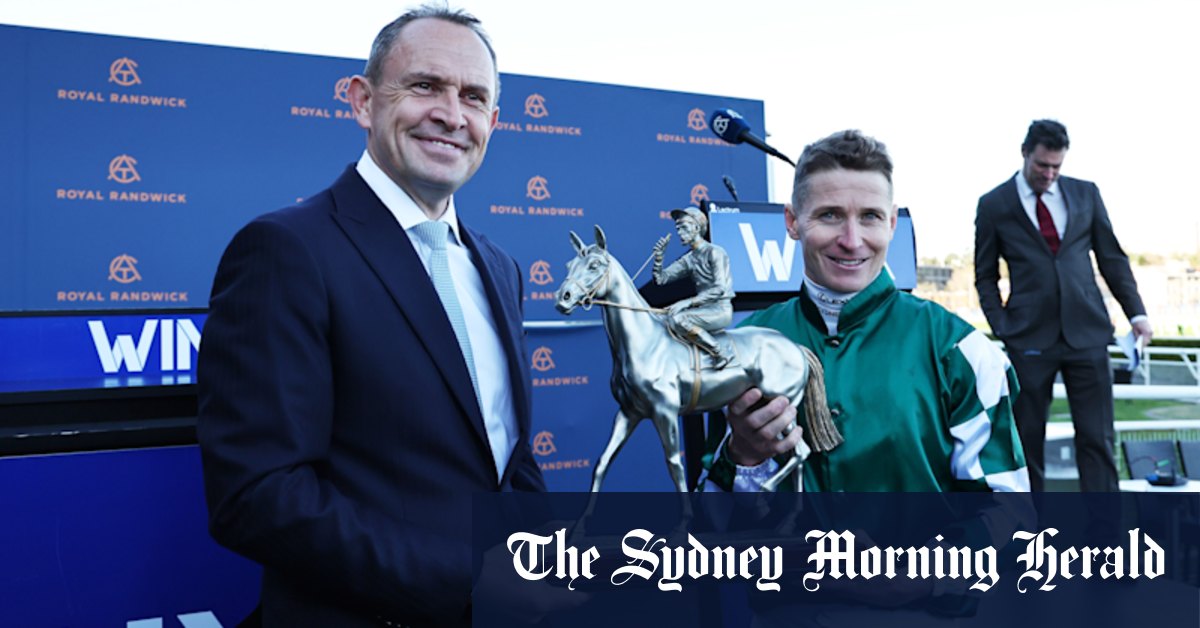 El entrenador Chris Waller y el jockey James McDonald después de las apuestas de Winx. Credit: Getty Images