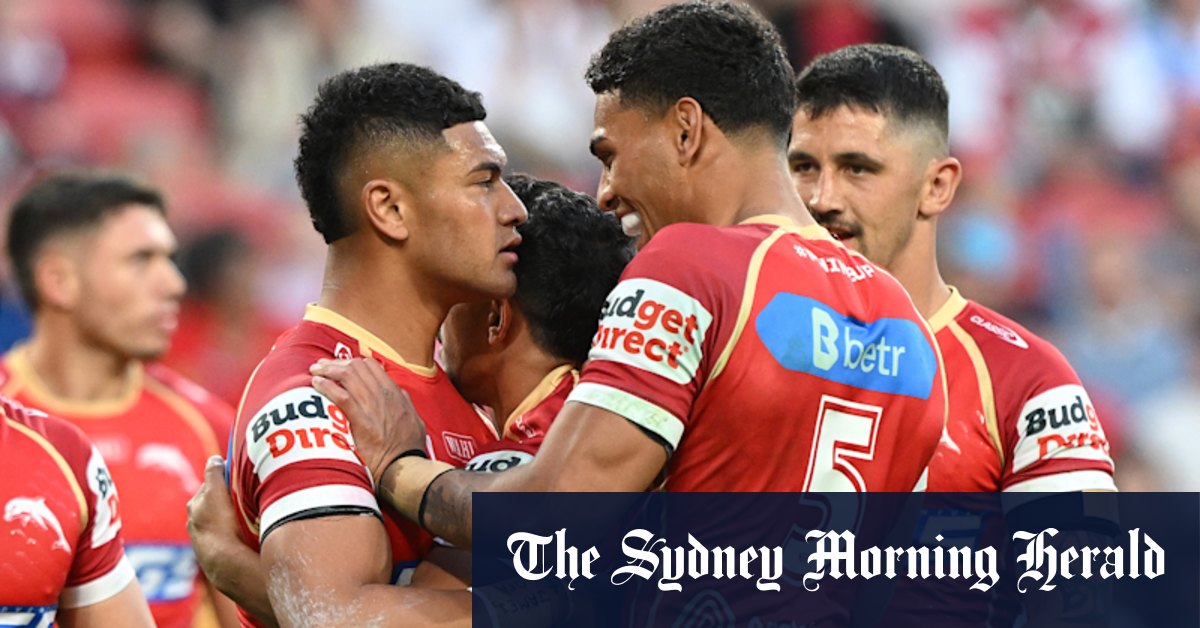 El creador de juegos de los Dolphins, Kodi Nikorima, anotó, Tabuai-Fidow regresó y los anfitriones contuvieron el aliento cuando los titanes Half Jayden Campbell anotaron una bomba.