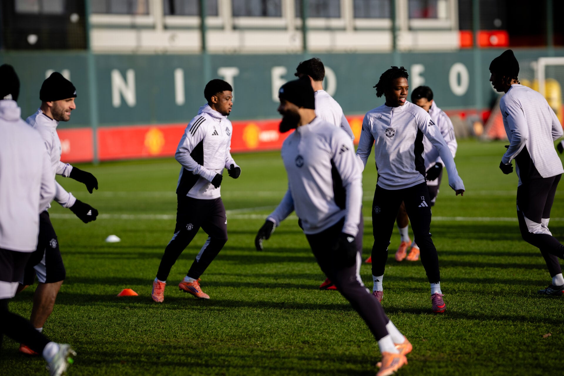 Durante la transmisión, se pudo ver a los tres, Amad, Mbeumo y Mazraoui, participando en la sesión de entrenamiento de rondó.