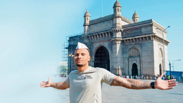 El siete veces medallista olímpico y velocista campeón mundial Andre De Grasse de Canadá, embajador internacional del evento para la 21ª edición del Maratón Tata Mumbai (TMM) que se correrá este domingo, ingresó al Centro de Prensa en Azad Maidan el jueves entre aplausos.