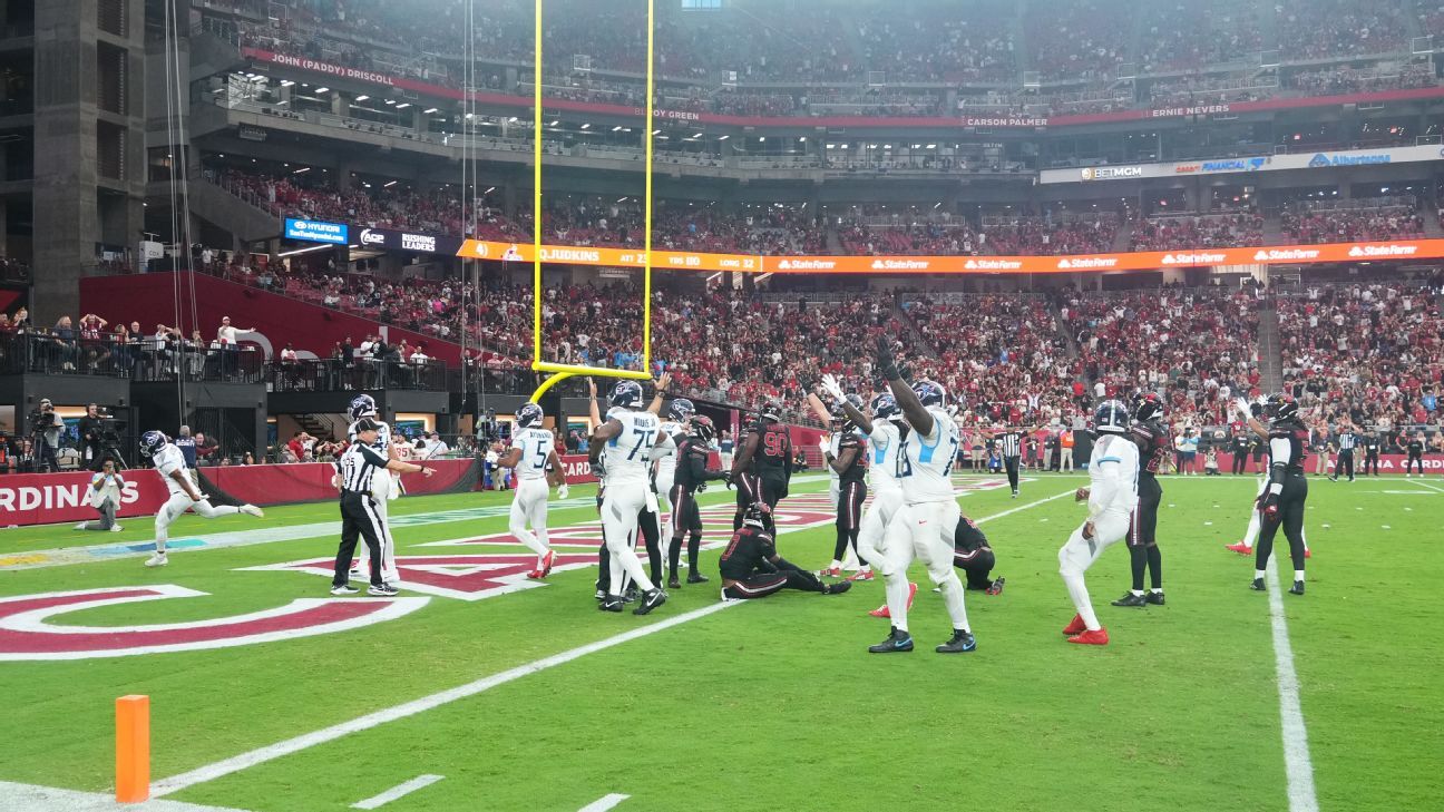 Arizona falló dos jugadas en el último cuarto que habrían sellado la victoria. El primero fue cuando el corredor Emari Demercado dejó caer el fútbol antes de cruzar la línea de gol después de liberarse para lo que habría sido un touchdown de 72 yardas. La pelota salió de la parte posterior de la zona de anotación para un touchback, dando la pelota a los Titanes, quien comenzó su regreso con una unidad de touchdown.