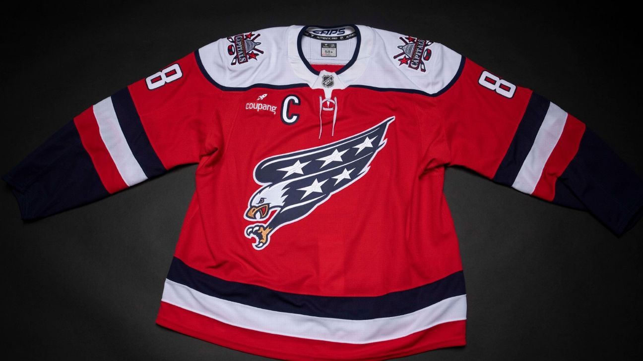 La nueva camiseta de los Capitales de Washington incluye el logotipo de “Screaming Eagle” de las Capitales que utilizaron de 1995 a 2007. Cortesía de Washington Capitals