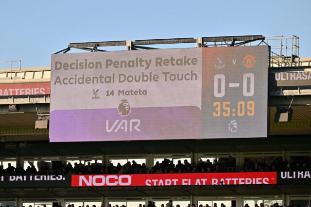 Palace se vio obligado a repetir el penalti y el delantero francés Mateta logró desviar al número 1 del United por segunda vez en el partido.