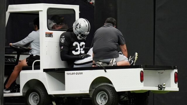El veterano de seis años fue transportado fuera del campo después de que chocó con el ala defensiva Maxx Crosby mientras intentaba enfrentar al corredor Raheem Mostert.