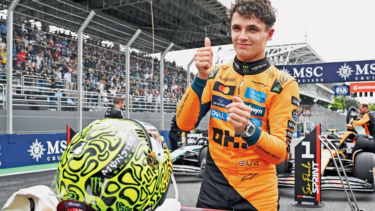 Lando Norris ganó el sábado la carrera al sprint en el Gran Premio de Sao Paulo desde la pole para ampliar su ventaja en el campeonato mundial después de que su compañero de equipo en McLaren y rival más cercano al título, Oscar Piastri, se estrellara. Norris toma una ventaja de nueve puntos en la carrera principal del domingo con Piastri haciendo un trompo en la vuelta seis después de chocar con un bordillo mojado en un Interlagos nublado y húmedo.