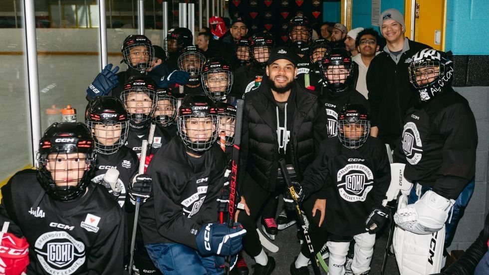 Gracias a sus programas de hockey de base, alrededor de 1.500 niños pueden jugar hockey “completamente gratuito”, según Akim Aliu. Cortesía de Akim Aliu