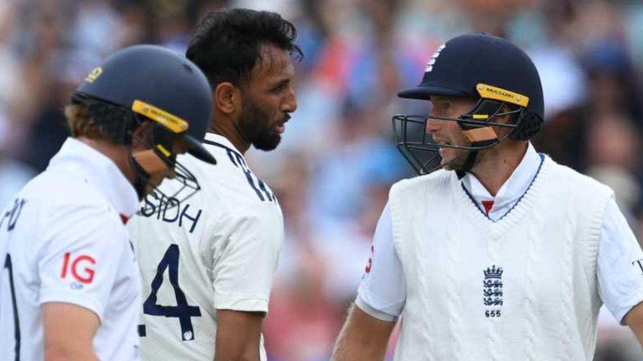 En el quinto partido de prueba contra Inglaterra, se vio el marcapasos del equipo India Prasidh Krishna intercambiando algunas palabras con el incondicional Joe Root, el bateador claramente no estaba feliz por eso.