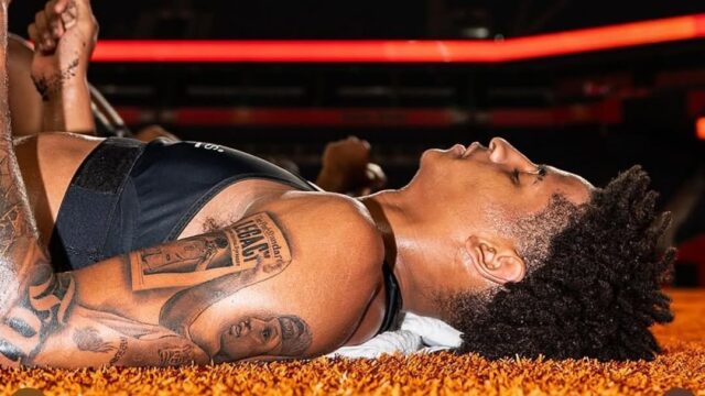 En la imagen original, Carmelo levantó un periódico con un titular gigante de “Champs” sobre una foto de sí mismo. El tatuaje de Kiyan es un remix de ese momento, intercambiando un gráfico creado por Grant Goldberg y Allan Fegley de ESPN, donde la portada del periódico muestra al graduado luterano de Long Island en lugar de su padre. Kiyan también reemplazó a “Campos” con “Legado”.