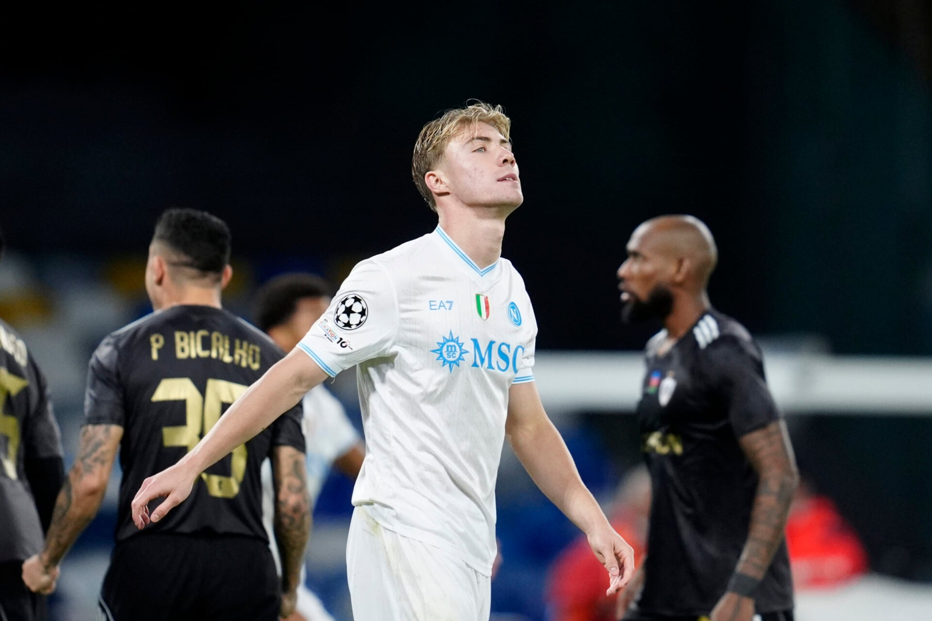 Rasmus Hojlund falló un penal cuando el Napoli venció al Qarabag FK en la Liga de Campeones el miércoles por la noche.