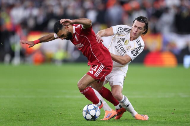 Álvaro, titular como lateral izquierdo en una zaga de cuatro, tenía la tarea de mantener tranquilo a Mohamed Salah. Fue Alexis Mac Allister quien marcó el gol para los locales.