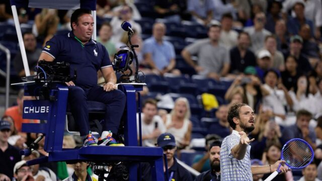 NUEVA YORK – El partido de Daniil Medvedev se retrasó más de seis minutos entre puntos el domingo por la noche, después de que un fotógrafo ingresó a la cancha en el punto de partido y el campeón del Abierto de Estados Unidos 2021 se enfureció por la decisión del árbitro del presidente de otorgar a su oponente un primer servicio.