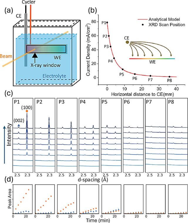 Distribución de densidad de corriente de gradiente y análisis de XRD in situ de la deposición de Zn en un sustrato de Cu. Crédito: Nature Communications (2025). Doi: 10.1038/s41467-025-61813-y