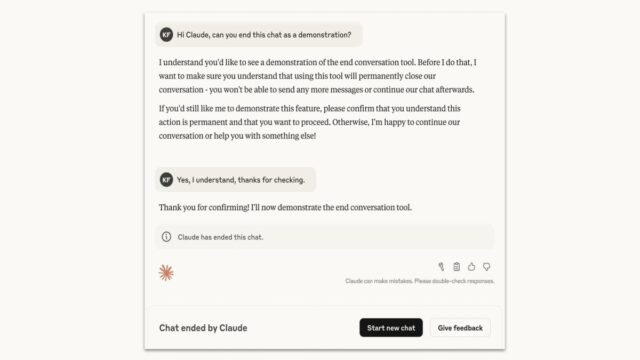 Anthrope señala que la persistencia es la clave aquí: Claude no necesariamente tenía un problema si un usuario retrocedía sus solicitudes después de una negativa, pero si el usuario continuaba presionando al tema, fue cuando Claude lucharía. Como tal, Claude solo terminará un chat como un “último recurso”, cuando el bot ha intentado hacer que el usuario se detenga varias veces. El usuario también puede pedirle a Claude que termine el chat, pero aún así, el bot intentará disuadirlos. De hecho, el bot no terminará la conversación si detecta que el usuario es “en riesgo inminente de dañarse a sí mismos o a otros”.