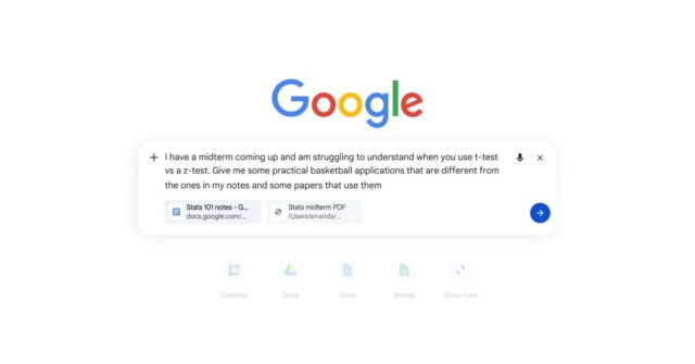 En la página Nueva pestaña (NTP) del escritorio, al tocar el botón “Modo AI” ahora se abre un cuadro de aviso en línea en lugar de simplemente llevarlo al sitio web. Al tocar el ‘más’, podrá “Agregar pestañas recientes” para el contexto, así como cargar imágenes y archivos, crear imágenes, búsqueda profunda, lienzo y cambiar de modelo de Gemini 3. Existe la posibilidad de mezclar y combinar entradas/cargas.