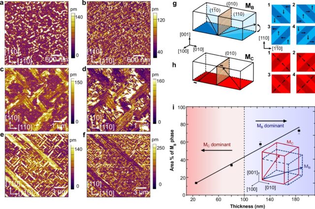 “Esencialmente, puedes controlar cuánto MB versus MC tienes en el material”, dice Xu. “Y las cantidades relativas de MB y MC interactúan de manera compleja que influyen en los límites de fase en la película delgada”.