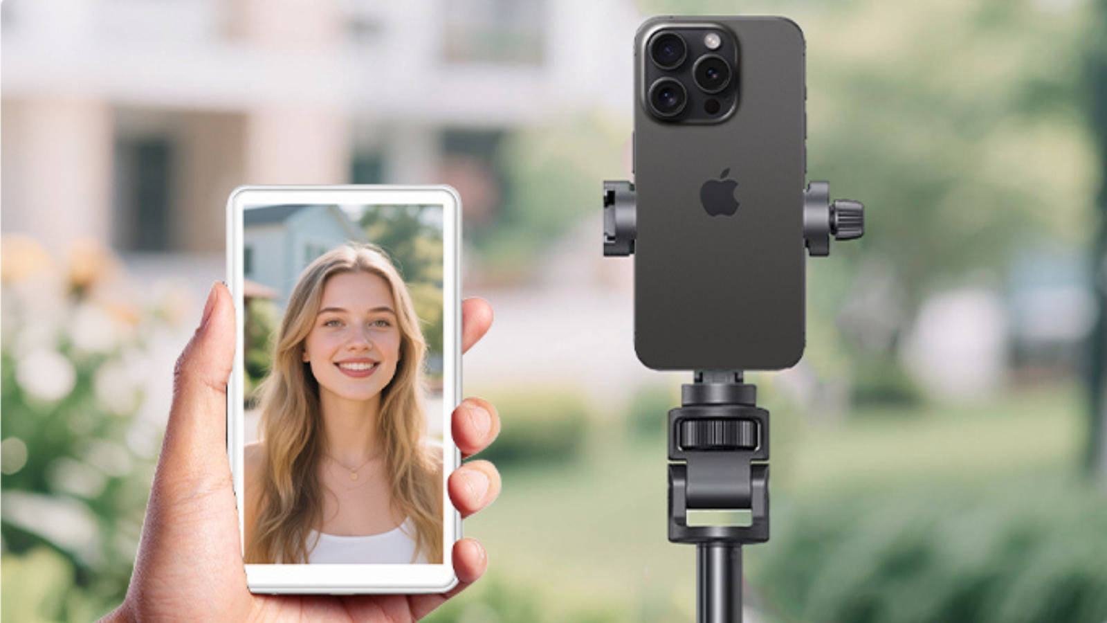 La gran parte de esto es que le permitirá filmarse mientras usa las cámaras principales en un teléfono, lo que dará como resultado una mejor calidad en comparación con la cámara frontal del dispositivo. El monitor es recargable usando USB-C y puede durar horas a la vez.