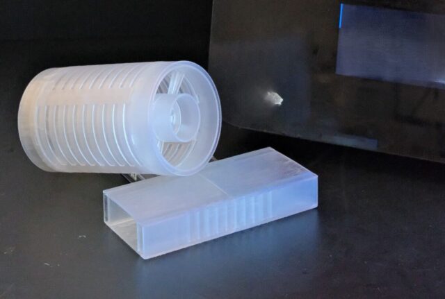 Las estructuras PGUOM rectangulares y cilíndricas funcionan con el mismo mecanismo subyacente, que ofrece un rendimiento comparable de silenciamiento de banda ancha. Ambas geometrías mantienen un alto flujo de aire, subrayando la versatilidad del metamaterial en diversos escenarios de aplicación. Las muestras que se muestran fueron impresas en 3D usando una impresora comercial. Crédito: Zhiwei Yang y Xin Zhang