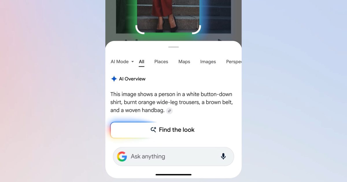 Esto también da como resultado una mejor experiencia de compra cuando desea replicar la decoración de una habitación o la vestimenta de alguien. En el último caso, puede tocar el botón “Buscar el look” encima de la nueva barra “Preguntar cualquier cosa”.