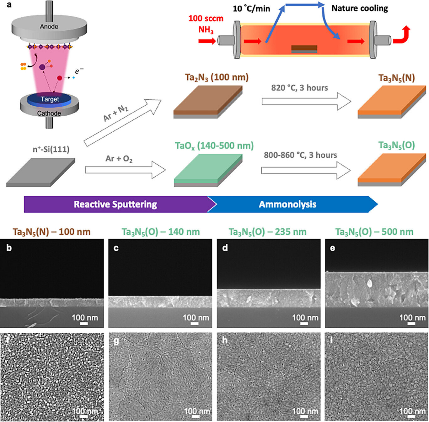 A diferencia de las rutas de síntesis convencionales, este enfoque permite la formación de películas TA3N5 de alto rendimiento y de alto rendimiento en sustratos de silicio, al tiempo que reduce significativamente el uso de tántalo. Los fotoanodos resultantes exhiben una separación de carga mejorada y una generación de fotocorriente mejorada, logrando niveles de rendimiento anteriormente solo accesibles con películas mucho más gruesas.
