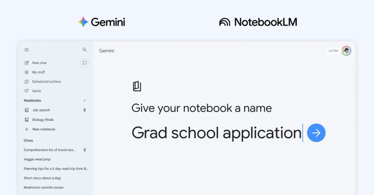 La aplicación Géminis es conseguir Integración más profunda de NotebookLM después del soporte de fuente inicial introducido el año pasado. Google está introduciendo el concepto de “cuadernos”.