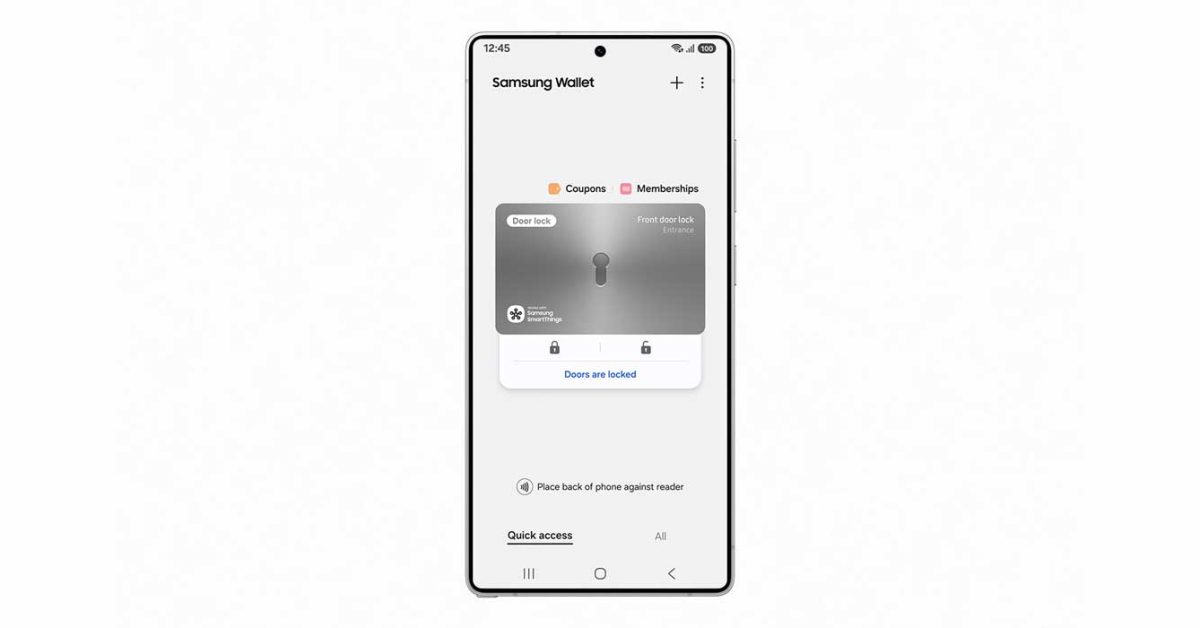 Una vez que se agrega la llave de inicio digital a Samsung Wallet a través del proceso de configuración de la cerradura, los usuarios podrán desbloquear su puerta usando NFC y UWB, según las capacidades de la cerradura. El desbloqueo NFC funciona de la misma manera que los pagos sin contacto, con un toque rápido en la cerradura de la puerta.