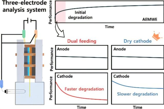 El profesor Youngkook Kwon y su equipo de investigación en la Escuela de Ingeniería Química de Energía en Unist han descubierto que, al contrario de los supuestos anteriores, el deterioro del rendimiento inicial se origina predominantemente desde el lado del cátodo. Sus hallazgos demuestran que operar en condiciones de cátodo seco mitiga efectivamente esta degradación temprana.