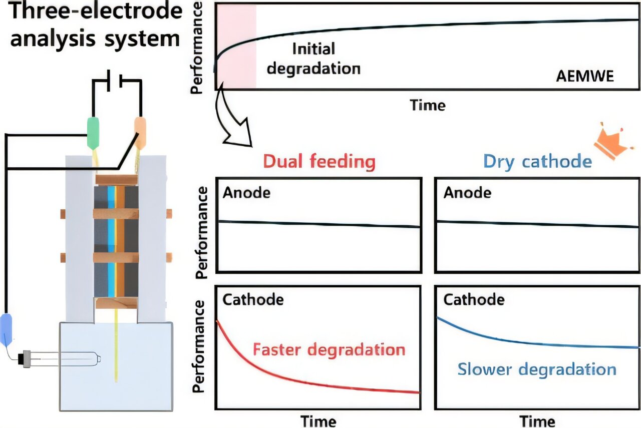 Más información: Tae-hoon Kong et al, un cátodo es el contribuyente clave para la degradación inicial de los electrolizeros de agua de la membrana de intercambio de aniones, letras de energía ACS (2025). Doi: 10.1021/acsenergylett.5c01785