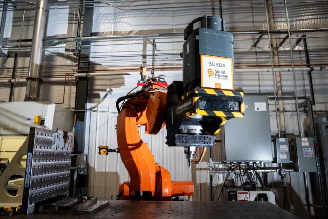 “Una vez que esto se perfeccione, no habrá accesorios, ni yunque ni fuerza transmitida a la línea de ensamblaje”, dijo Blocher. “El único trabajo del robot será mantener el accesorio de fricción en su lugar y mantener la posición correcta”.