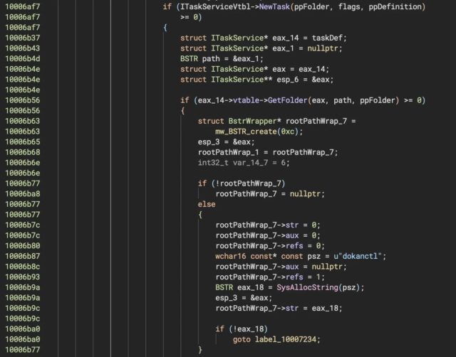 Investigadores intezer identificado que el malware aprovecha las interfaces ITASKService e IreGisteredTask para crear una tarea programada llamada “Dokanctl” en la carpeta raíz.