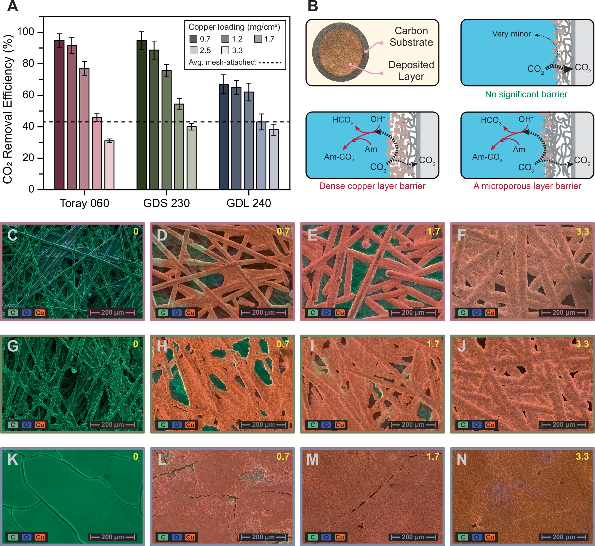 En el primer trabajo de investigación titulado “Una regeneración de amina mediada electroquímicamente sin membrana para la captura de carbono”, el equipo se centró primero en reemplazar la membrana convencional de intercambio iónico en el proceso de regeneración de amina mediado electroquímicamente con electrodos de difusión de gases.