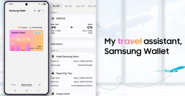 Samsung dice que una actualización de Samsung Wallet permitirá a los usuarios agregar confirmaciones de hoteles, itinerarios de vuelos, alquileres de automóviles y excursiones a una nueva tarjeta de “viajes”. Las reservas agrupadas aparecerán como una tarjeta en la aplicación Wallet, lo que proporciona una forma rápida de acceder a los detalles de su viaje.