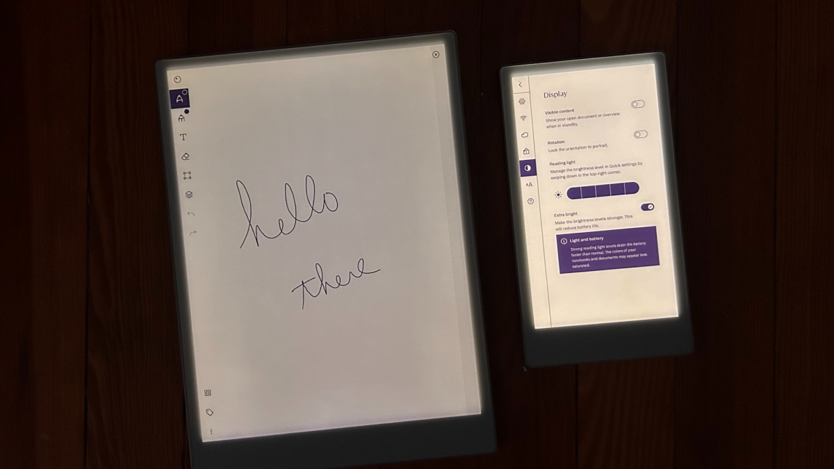 Para probarlo, abra el menú Configuración en su notable Paper Pro o Paper Pro Move and Toque Display, luego toque el control deslizante para activar el más brillante. (Verá una advertencia de que hacerlo “drenará la batería más rápido de lo normal”).