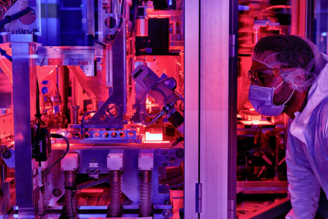 Los fabricantes de automóviles y otros trabajan intensamente para desarrollar baterías livianas, seguras y potentes. La foto es de la compañía de baterías de Volkswagen Powerco, que ha construido grandes fábricas en Alemania, España y Canadá para producir celdas de batería de alta calidad. Crédito: Volkswagen AG