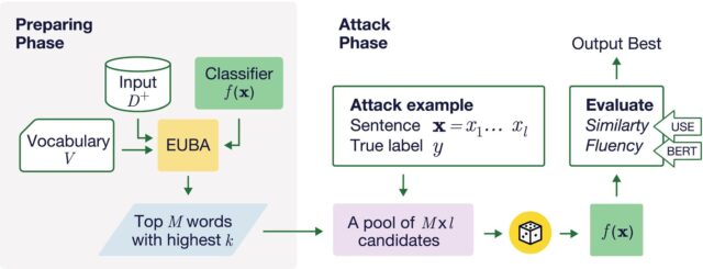 Un método estándar para probar estos sistemas de clasificación es crear lo que se conocen como ejemplos sintéticos, sentencias que se parecen mucho a los que ya se han clasificado. Por ejemplo, los investigadores pueden tomar una oración que ya ha sido etiquetada por un programa de clasificadores como una revisión favorable, y ver si cambiar una palabra o algunas palabras mientras retiene el mismo significado podría engañar al clasificador para que considere una sartén. O una oración que se determinó que era información errónea podría ser errónea como precisa. Esta capacidad de engañar a los clasificadores hace estos ejemplos adversos.